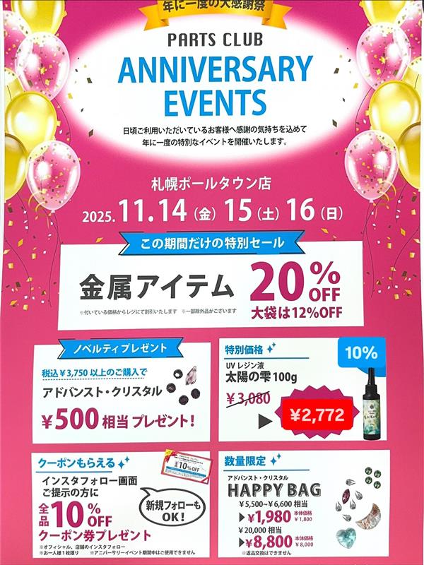 - パーツクラブ札幌ポールタウン店 アニバーサリーイベント開催中 パーツクラブ札幌ポールタウン店 2025.11.14 POLE TOWN