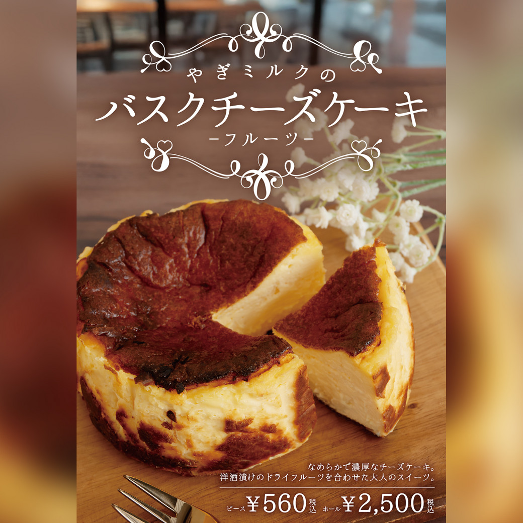 🔶やぎミルクのバスクチーズケーキ-フルーツ-…ピース/560円(税込) ホール/2,500円