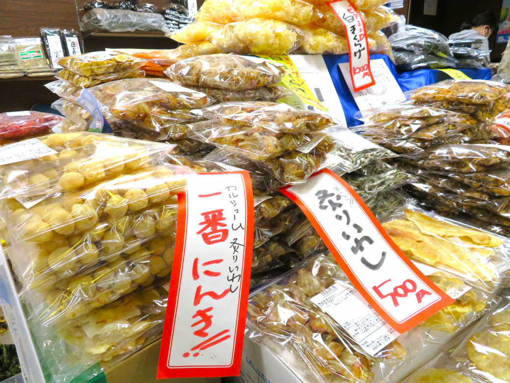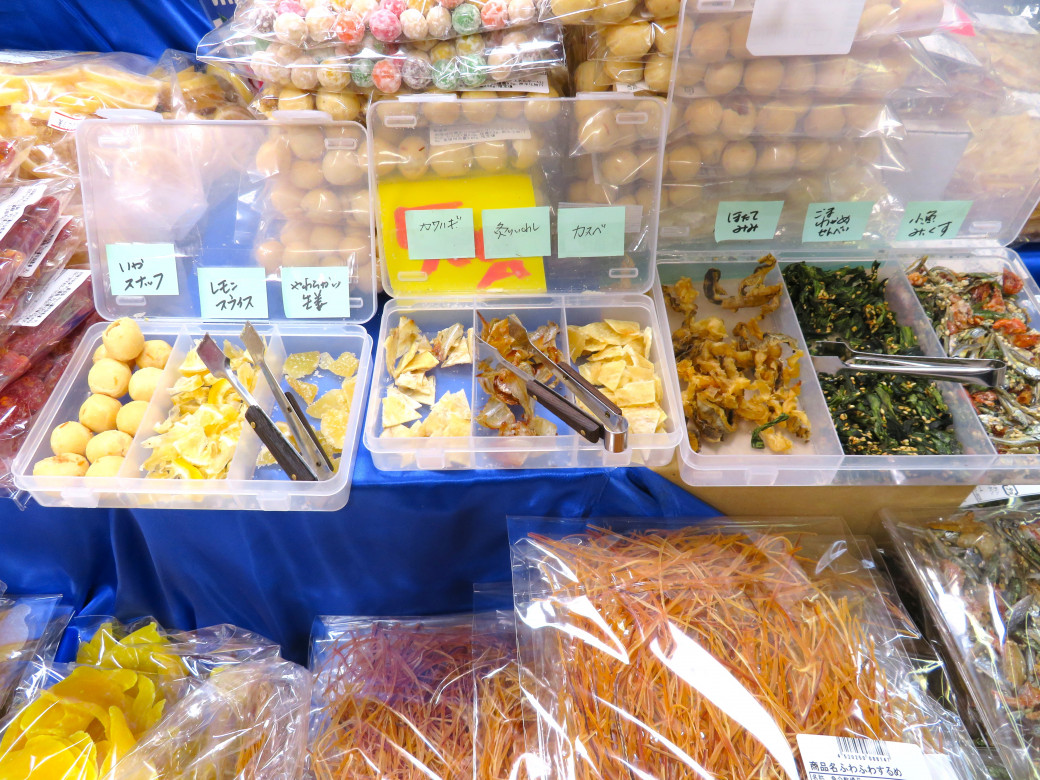 うまい屋では海そうや珍味、ドライフルーツの販売をしています。