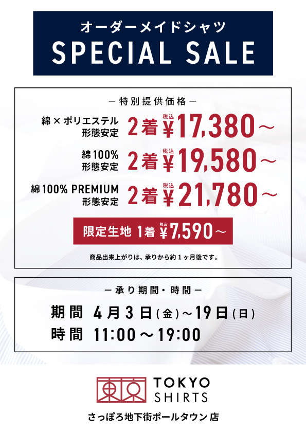 - オーダーメイドシャツ SPECIAL SALE開催‼ TOKYO SHIRTS(東京シャツ) 2026.4.3 POLE TOWN