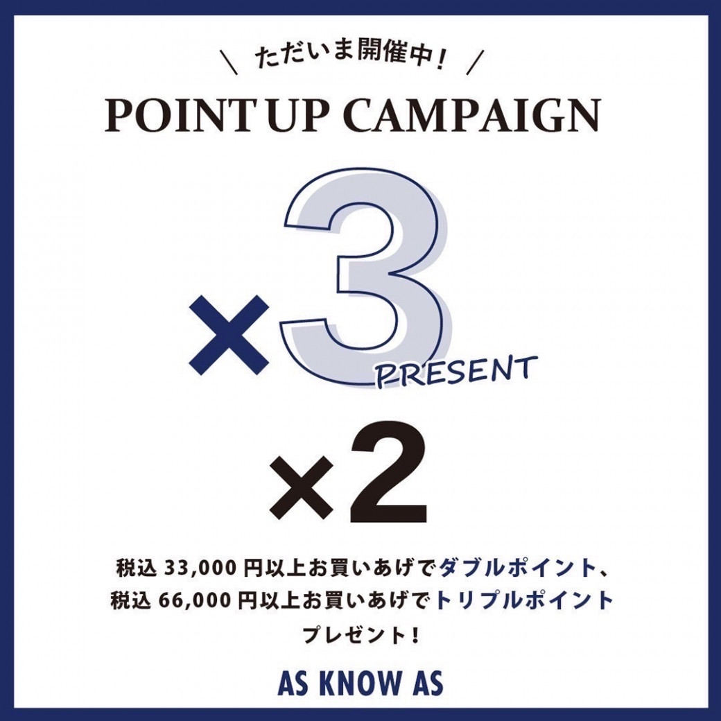 - アズノゥアズドゥバズよりポイントアップキャンペーンのお知らせ!! as know as de base(アズ ノゥ アズ ドゥ バズ) 2026.2.28 AURORA TOWN