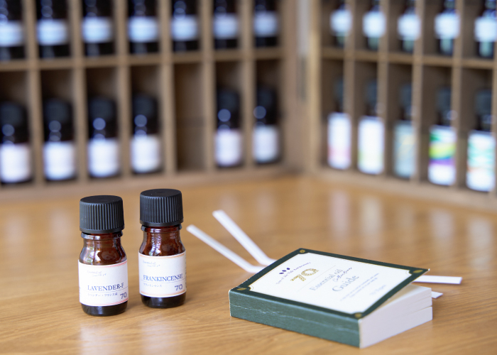 長年愛されている精油から希少な精油、普段は一部の店舗とオンラインストアしか手に入らない限定ブレンドを取りそろえた計70本をラインナップ。さらに、香りの情景と短い詩を綴ったアロマガイドブックも同封されています。