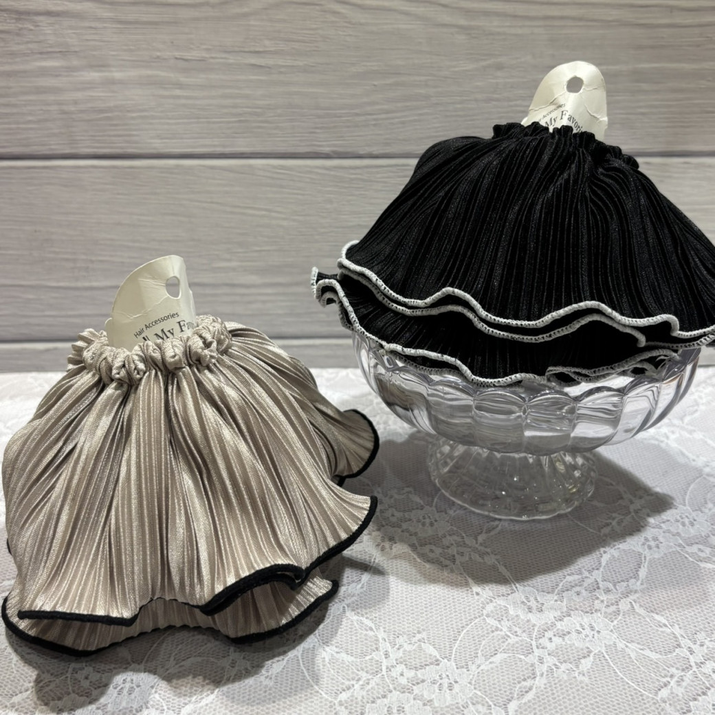 プリーツ素材がふんわり可愛いこちらのシュシュ。付けるだけで後ろ姿が一気に華やかに!
