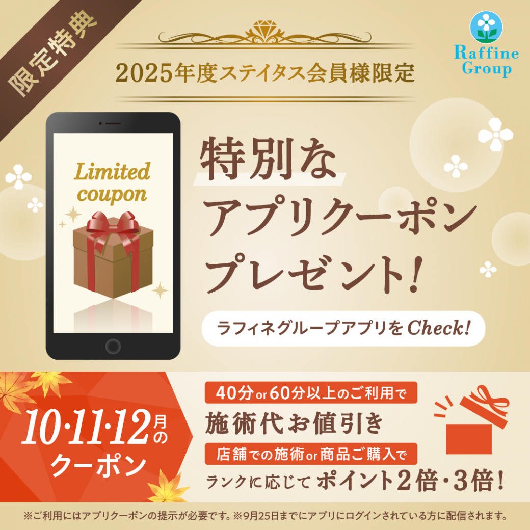 ステイタス会員さまには、3ヶ月ごとにお得なクーポンを配信しております♪